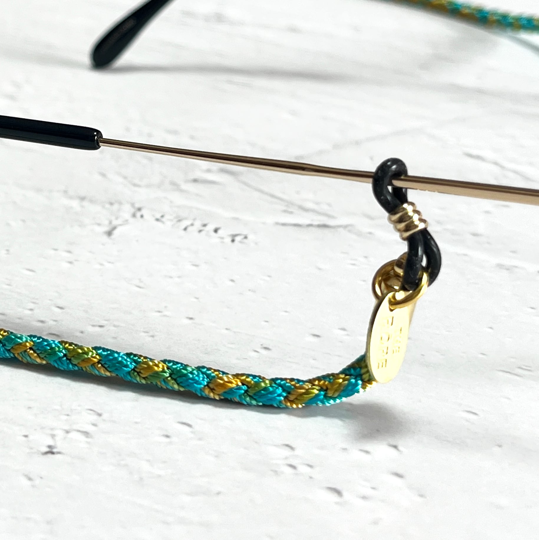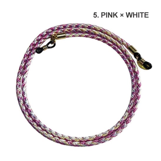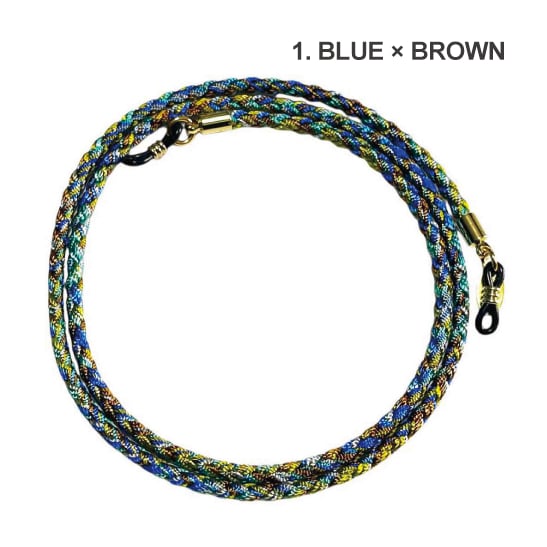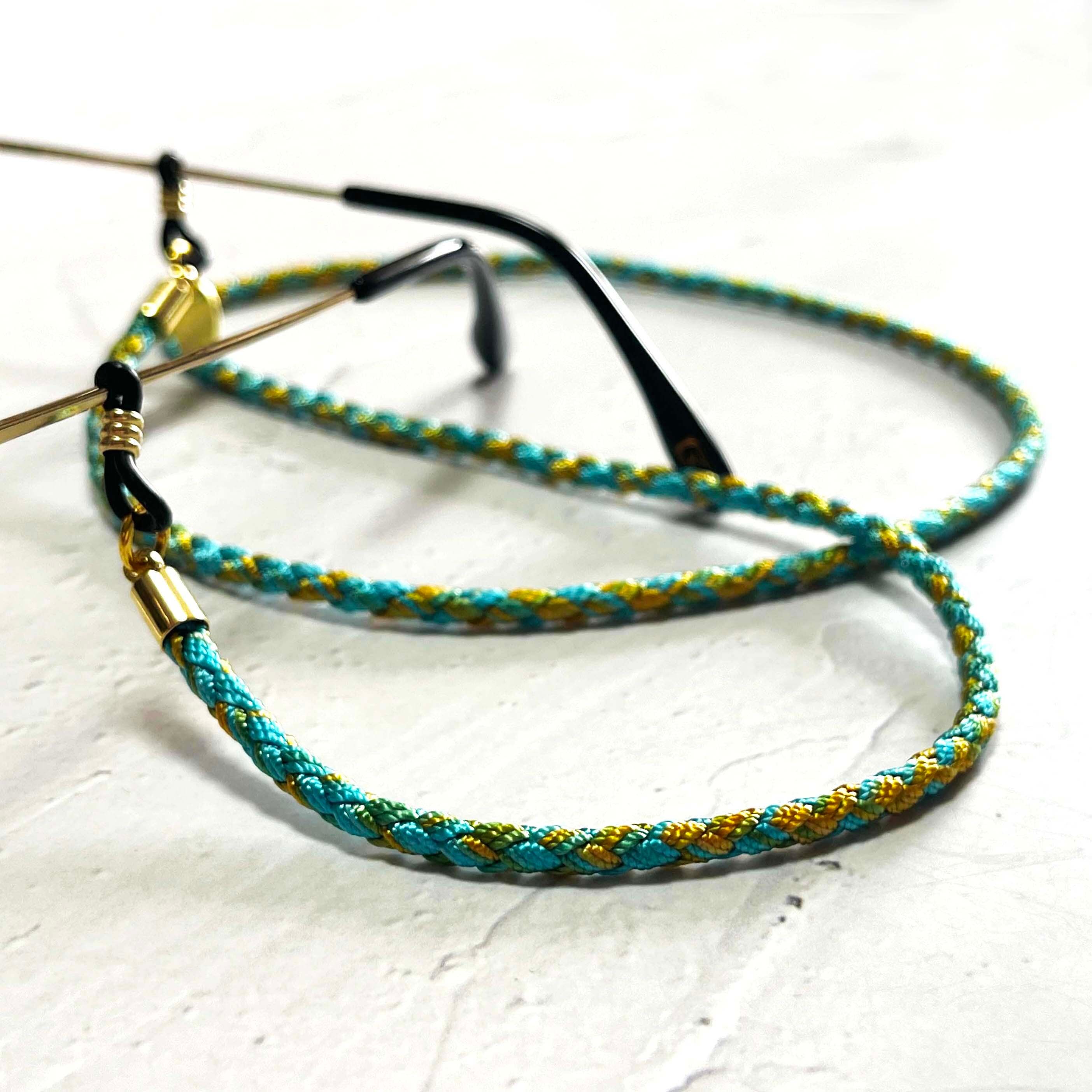 繊細に編み上げられた美しいコードに、華やかさを引き立てるゴールドパーツをあしらったグラスコード。しなやかな質感と軽やかな着け心地で、眼鏡やサングラスに上品なアクセントを添えます。カラフルでありながら洗練された佇まいは、シンプルな装いに程よい華やかさをプラス。日常使いはもちろん、特別なシーンでもひときわ輝く存在感を放ちます。